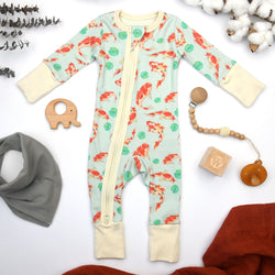 - Organic Cotton Baby Pajamas 2-Way Zip Front Zipper Sleeper, Koi
